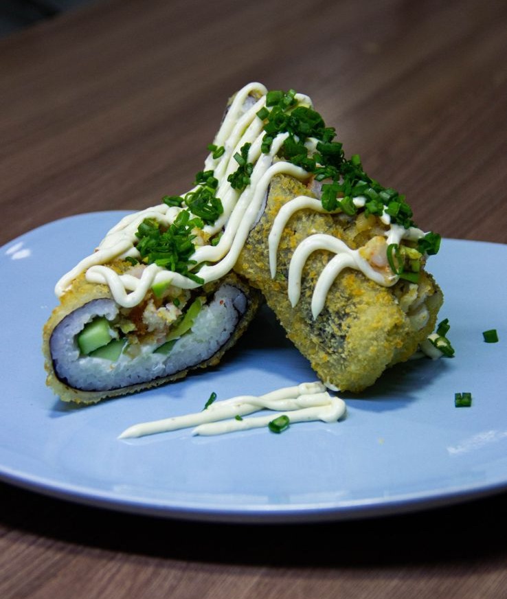 сыр, огурец, креветка в кляре, авокадо, соус чесночный, криспи лук