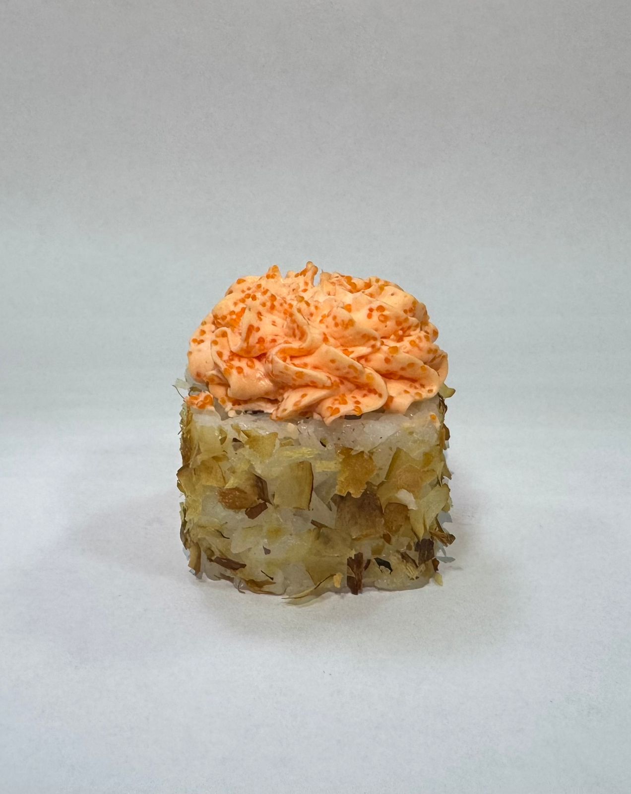 лосось, краб, огурец, соус спайс, стружка тунца, сыр+масаго (шапочка)