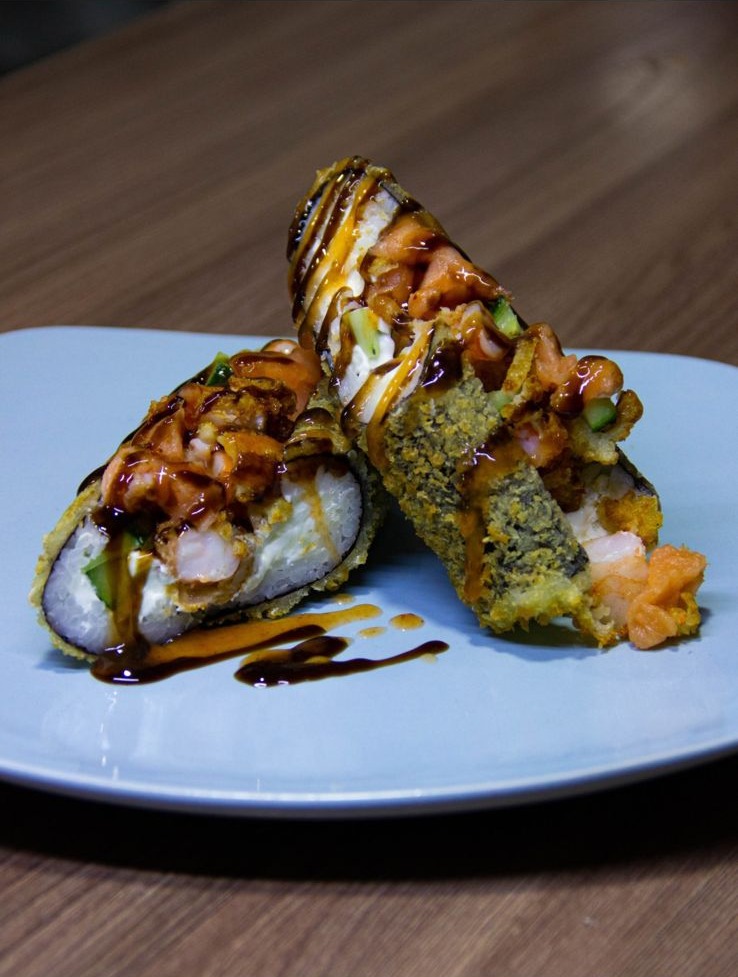 сыр, огурец, лосось, креветка в кляре, огурец, соус манго чили, соус унаги