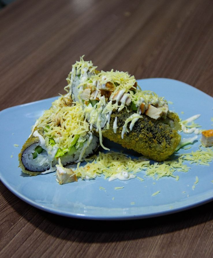 сыр, огурец, курица, листья салата, соус цезарь, пармезан